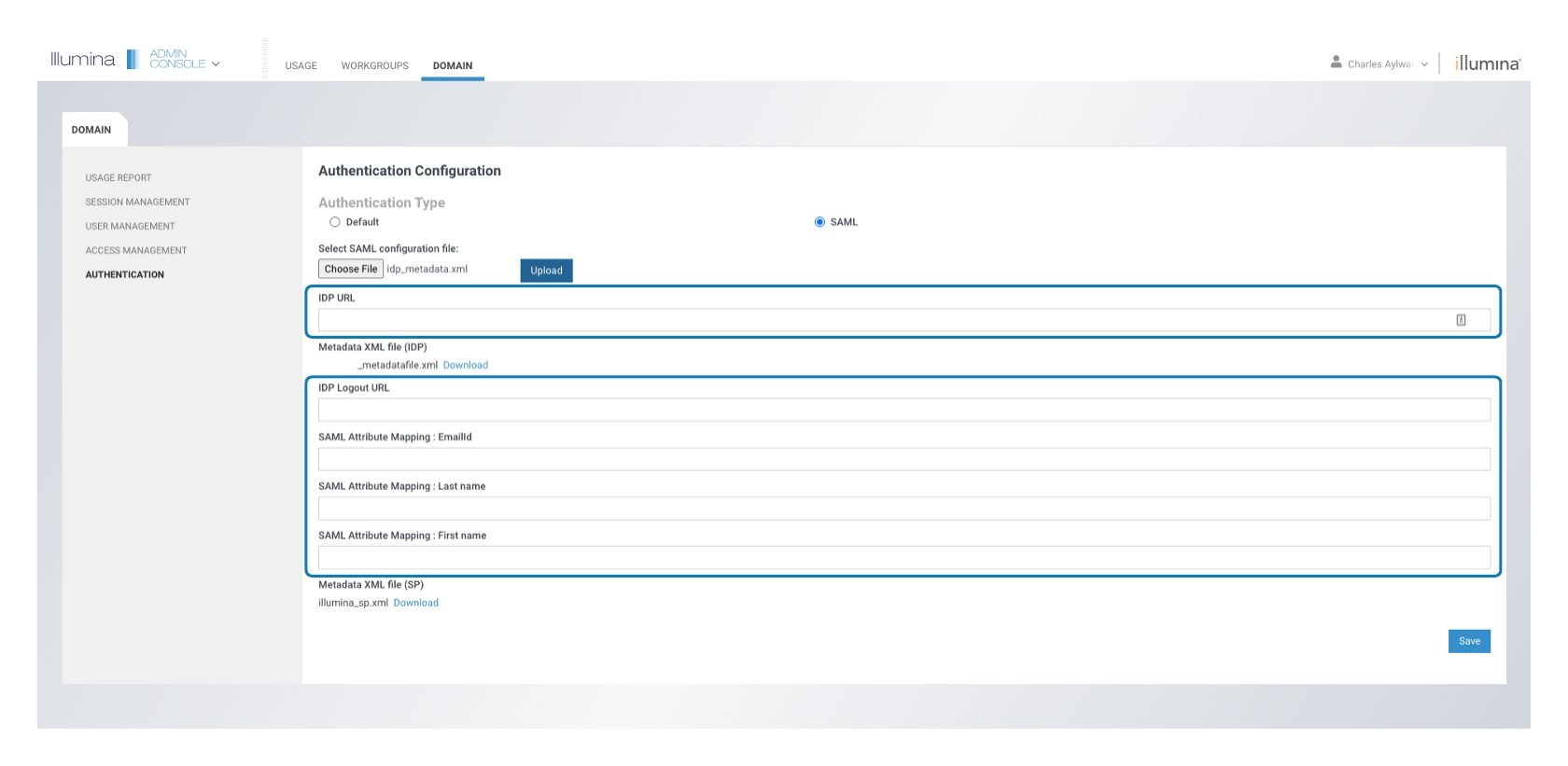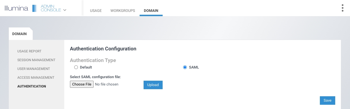 Allow 15 minutes for the Illumina Service Provider to update with the provided information. To confirm SAML configuration changes, go to the domain login URL https://<domain>.login.illumina.com. This should now redirect to the configured IDP login page.