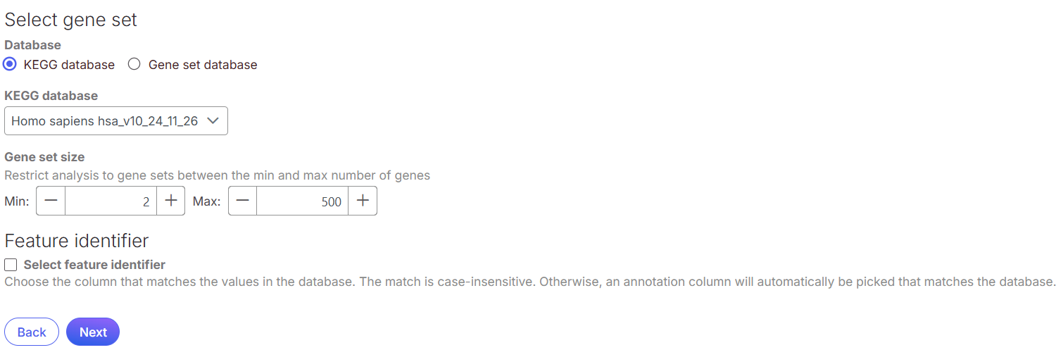 * Select 'KEGG database' (default) and click on '**Next**' button at the bottom of the page.