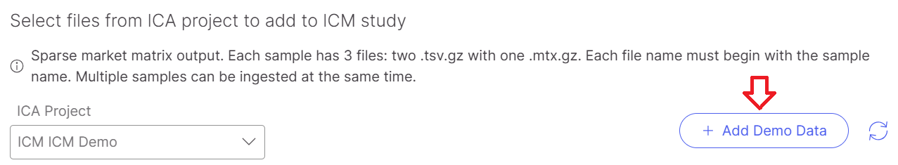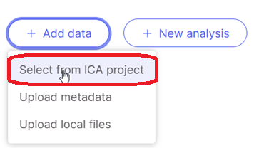 In order to import demo data into a specific study, first clock on the "+ Add Data" > "Select from ICA Project.